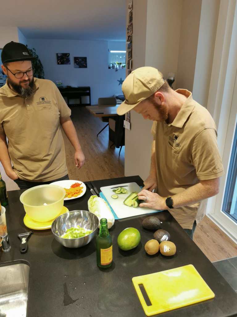 Den Auftakt machte eine klassische Misoshiru – eine Miso-Suppe mit Shiitake Pilzen und Seidentofu. Darauf folgte ein erfrischender japanischer Krautsalat, bestehend aus Chinakohl, der mit einem Dressing aus Sesamöl, Sojasauce und Mirin abgeschmeckt wurde. Der Hauptgang gehörte ganz der Kunst des Sushi. Gekonnt wurden Zutaten wie Lachs, Lachsrogen, Thon, Avocado, Mango, Gurken und Karotten im Freestyle zu Maki, Nigiri oder Sashimi verarbeitet und mit Liebe zum Detail angerichtet. Abgerundet wurde der Abend durch selbstgemachtes Matcha-Eis. Ein Dessert, das nicht beschwerte, sondern den Abend rund und harmonisch ausklingen liess.