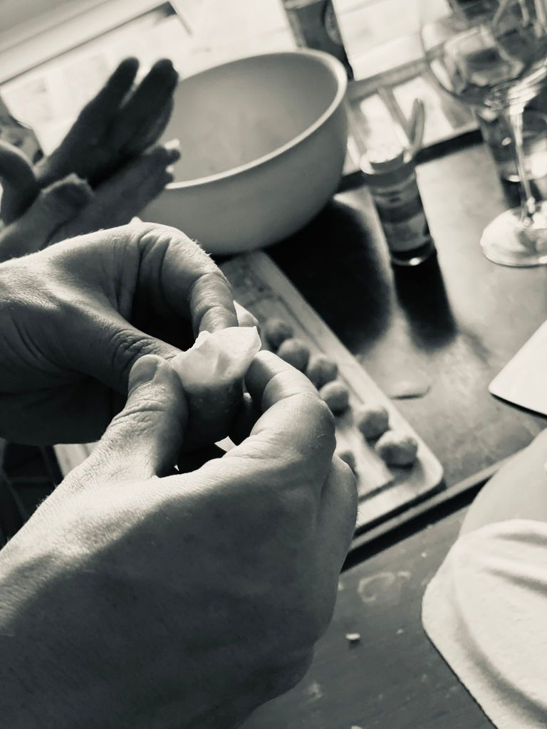Los ging’s mit Maultaschen, gefüllt mit feinstem Wildhackfleisch – der schwäbischen Antwort auf eigentlich jede kulinarische Lebenslage. Saftig, deftig und so gut, dass selbst eingefleischte Nicht-Schwaben kurz darüber nachgedacht haben, „Grüß Gott“ zu sagen. Danach folgte eine langsam geschmorte Rinderkeule, die stundenlang in Wurzelgemüse und viiiiel Rotwein vor sich hin geschlummert hatte. So viel Rotwein, dass das Fleisch vermutlich bessere Laune hatte als der Koch selbst. Begleitet wurde das Ganze von Spätzli, ehrlichem Rotkraut und gebruzeltem Rosenkohl, der selbst ausgewiesene Rosenkohl-Skeptiker überzeugt hat.